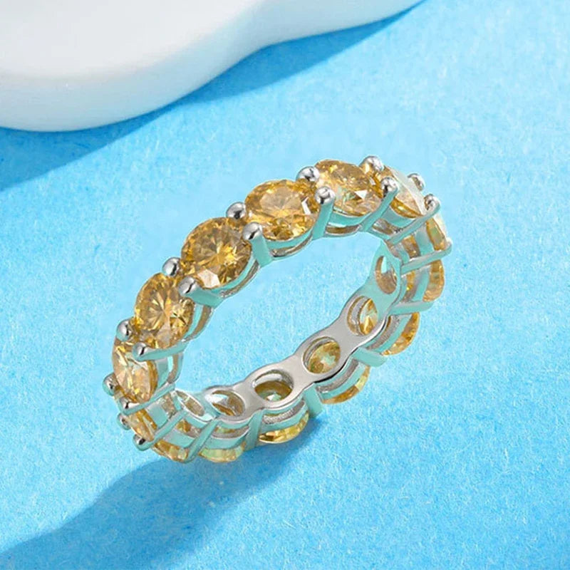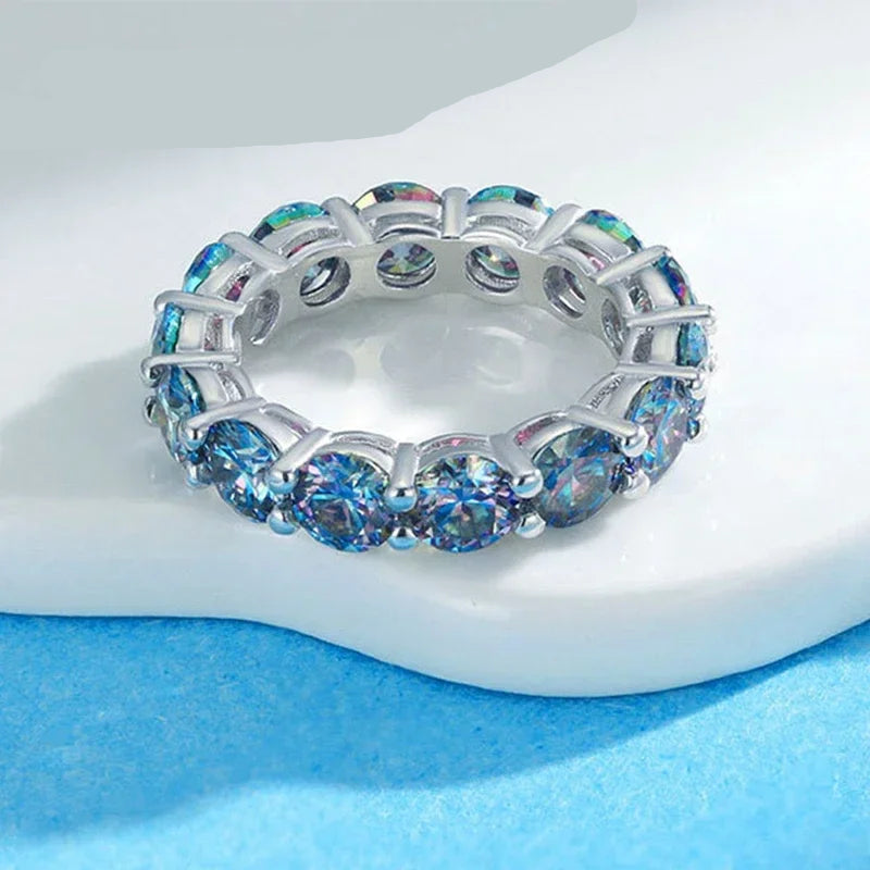 المويسانيت حجر مُصنّع في المختبر، معروف ببريقه الاستثنائي ومتانته وسعره المناسب. يكاد يكون صلبًا كالألماس، بل يُضفي عليه بريقًا أكثر تألقًا (بريق قوس قزح).