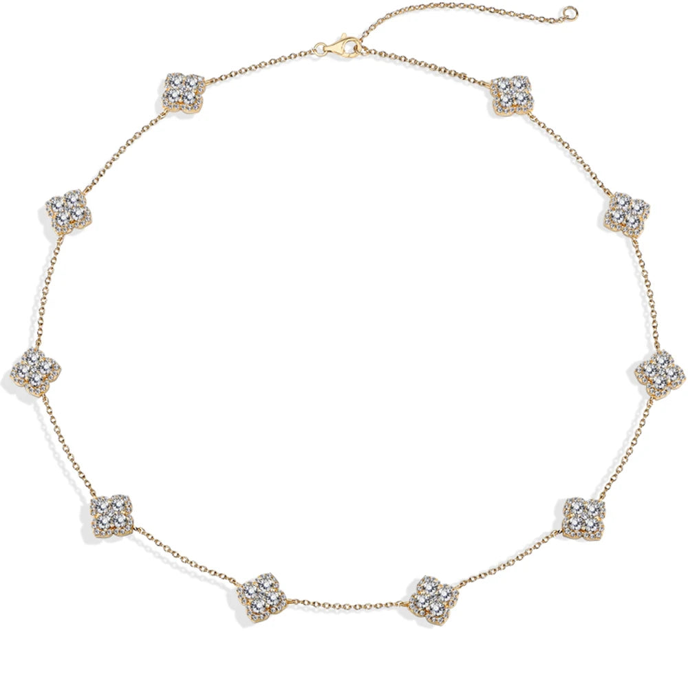 تألقي بأناقة مع قلادة زهرة سكارليت المصنوعة من المويسانيت - قطعة رومانسية تجمع بين تصميم مستوحى من الطبيعة وبريق المويسانايت الرائع. مثالية لإضفاء لمسة أنثوية على أي إطلالة.