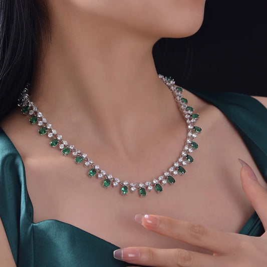 Seraphina Oval and Emerald Moissanite Necklace