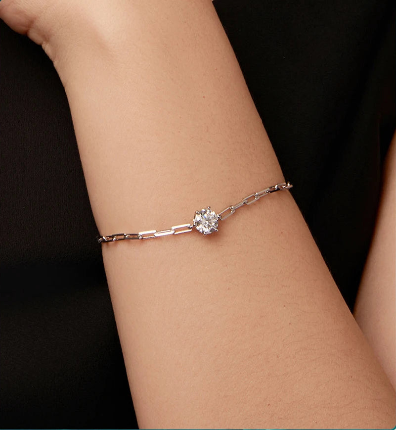 Discover effortless elegance with the Raya Adjustable Moissanite Bracelet—featuring a stunning 1 ct. (6.5 mm) D color VVS1 moissanite pendant with adjustable fit. Delicate beauty that adapts to you.