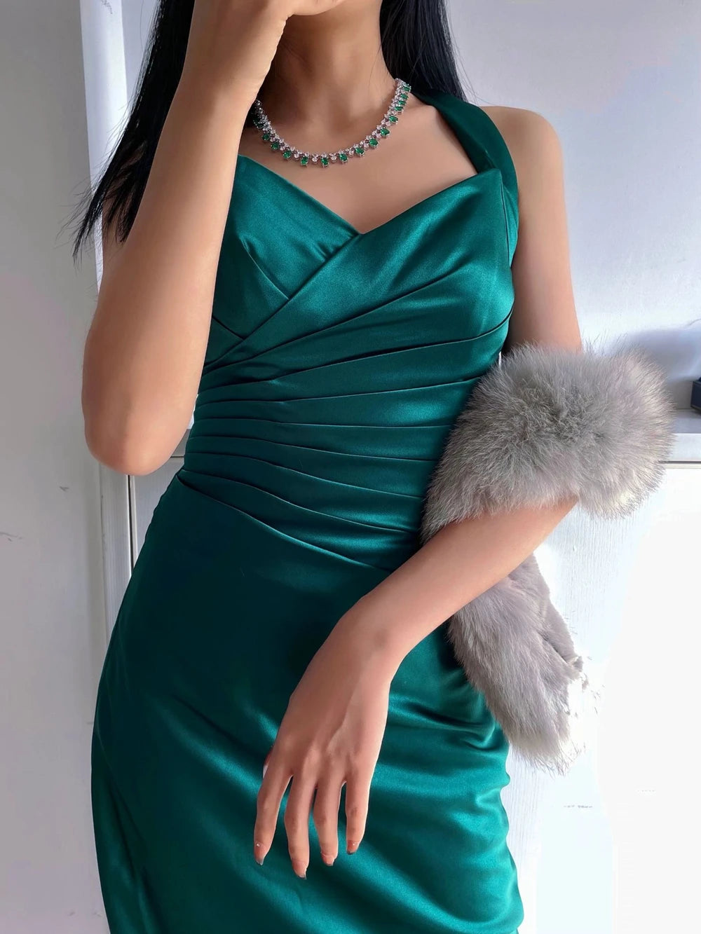 Command attention with the Seraphina Oval and Emerald Moissanite Necklace—a luxurious piece combining two elegant cuts for maximum visual impact. This substantial necklace makes a serious statement.